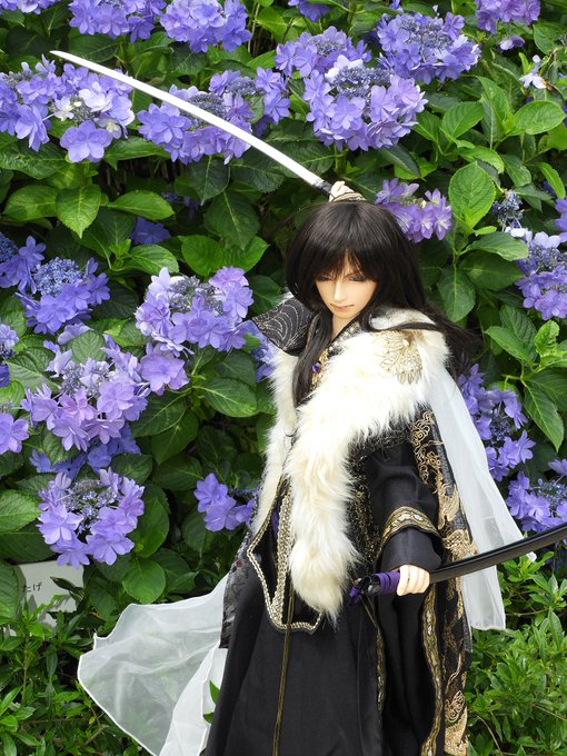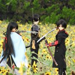 今夜のお題【 ぶきをもつ 】「過去」 #今夜のドール撮影120分一本勝負 今朝撮り。向日葵(と刀剣)男士! #とうらぶキャラド #刀剣乱舞 #和泉守兼定 #燭台切光忠 #加州清光 #銘犬吉 #スーパードルフィー