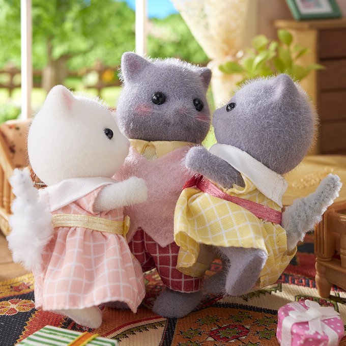 「お父さん、いつもありがとう!」 ラテネコのピーノとモニカがお父さんのマテオに #父の日 のプレゼントを用意したみたい💐 ステキなプレゼントをもらって、とってもうれしそうですね✨ #シルバニアファミリー #シルバニア #fathersday #お父さんありがとう #プレゼント