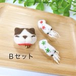 Aki AkoさんのSALE ブローチセット にゃんこ+イカさん2種類 羊毛フェルト #minne minne.com/items/30553625 #猫の日 #ねこ #ねこの日 #猫の日2022 #羊毛フェルト #cat #needlefelt #needlefelting #イカ