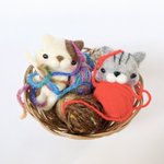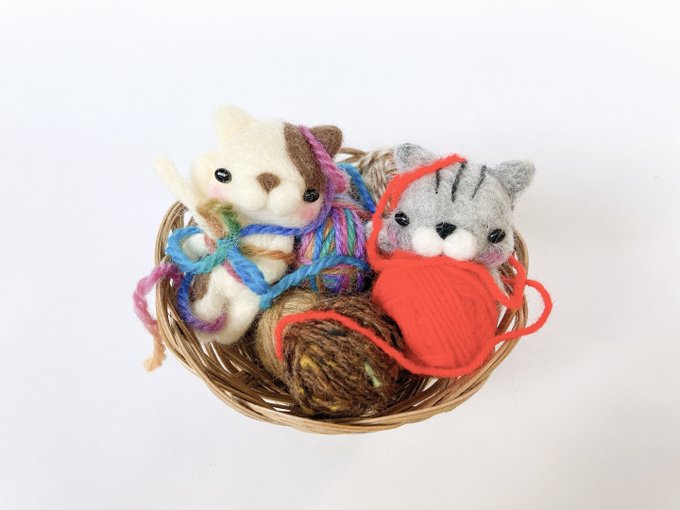 毛糸玉が入ったカゴを見つけて、思わず夢中でころころ遊ぶにゃんこさん。 夢中になりすぎて毛糸に絡まってしまいました♪ にゃんこ達のころころ毛糸玉遊び 置物 #minne minne.com/items/30293089 #猫の日 #ねこ #ねこの日 #ネコの日 #猫の日2022 #羊毛フェルト #needlefelt #needlefelting #毛糸玉