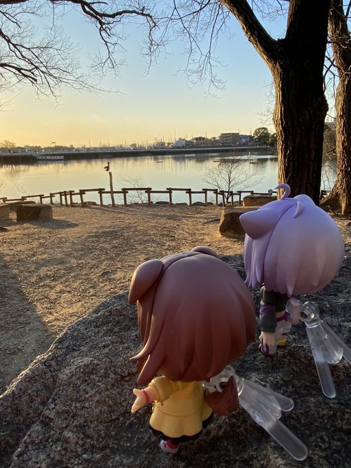 #深夜のねんどろ撮影60分一本勝負 4/20 お題【あるく】フライング 川辺を歩こう…猫耳ねんどろガール #変態王子と笑わない猫 #ShowByRock #ホロライブ #猫又おかゆ #キャットプラネット
