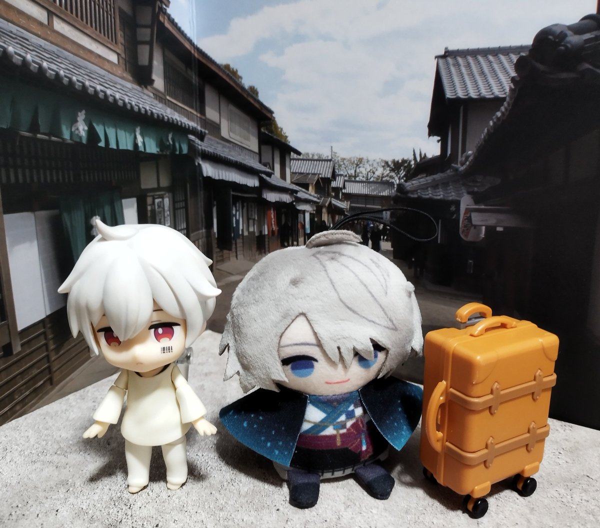 お題「たび」フライング はるまふの旅🌞🤍 江戸時代にタイムスリップ!? #深夜のねんどろ撮影60分一本勝負 #まふまふ #甲斐田晴 #にじぱぺっとが見られるタグ #にじぱぺっと #ぬいぐるみの時間 #まふまふねんどろいど