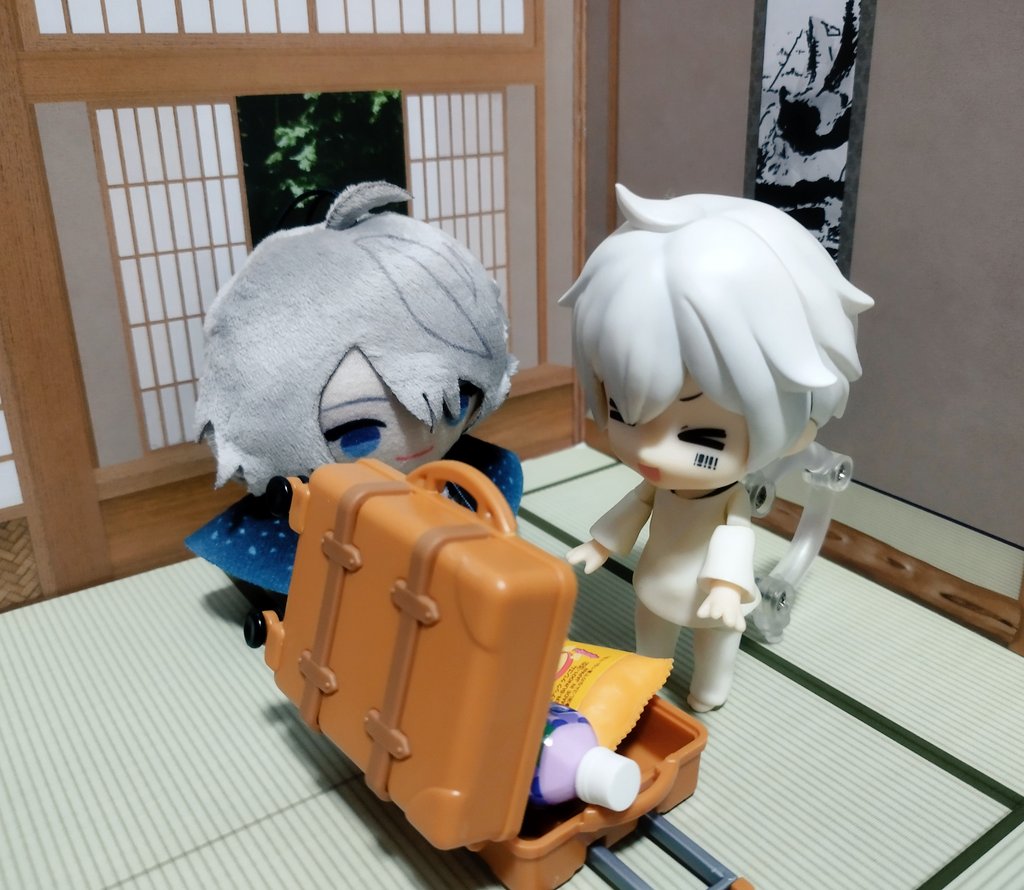 お題「りょこう」フライング 旅行の準備🧳 とごに行くのかな? #深夜のねんどろ撮影60分一本勝負 #まふまふ #甲斐田晴 #ぬいぐるみの時間 #にじぱぺっとが見られるタグ #にじぱぺっと #まふまふねんどろいど