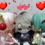 お題「きす」フライング 🌸💚「晴くんチュ❤️」🌞「わーい」 🌞「グヘヘ❤️」💙「何の夢見てるんだ?」 晴くんミクちゃんにぽっぺにキスしてる夢を見ています。 #深夜のねんどろ撮影60分一本勝負 #深夜の初音ミク撮影60分一本勝負 #ぬいぐるみの時間 #そらる #甲斐田晴 #にじぱぺっとが見られるタグ
