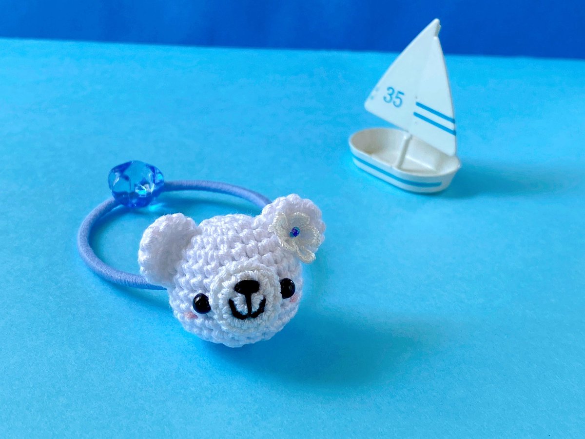 真っ白くまちゃんのあみぐるみヘアゴム🐻❄️ 今回から糸が変更になって、リニューアルしました✨ これまでより、さらに白さがUPしていますよ〜⤴️笑 今回は、ビーズがブルーのお星様の特別バージョンです⭐️ minne.com/items/5420221 #minne #あみぐるみ #あみぐるみヘアゴム #しろくま #白熊 #bear