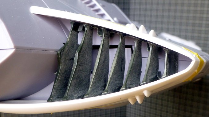 #百均のグッズ間違った使い方選手権 ドメラーズⅢのインテーク、フィンを抜いたのは良かったんだけど、中が丸見えになってしまった(-_-;) 百均のシャボン玉ストローでエンジンっぽく作ってみましたよ(*^^)v