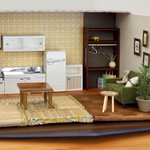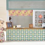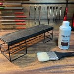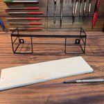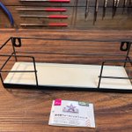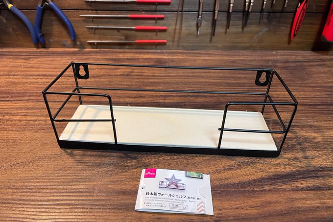 #百均のグッズ間違った使い方選手権 ダイソーのウォールシェルフを逆さにした万能デスク。 1/12の撮影でよく使います。 底板を外して、角を少しカッターで削ります。 木工ニスを塗って天板へ。 壁に引っ掛ける部分をペンチで外せば出来上がり。 腰下の高さがバッチリです🙌