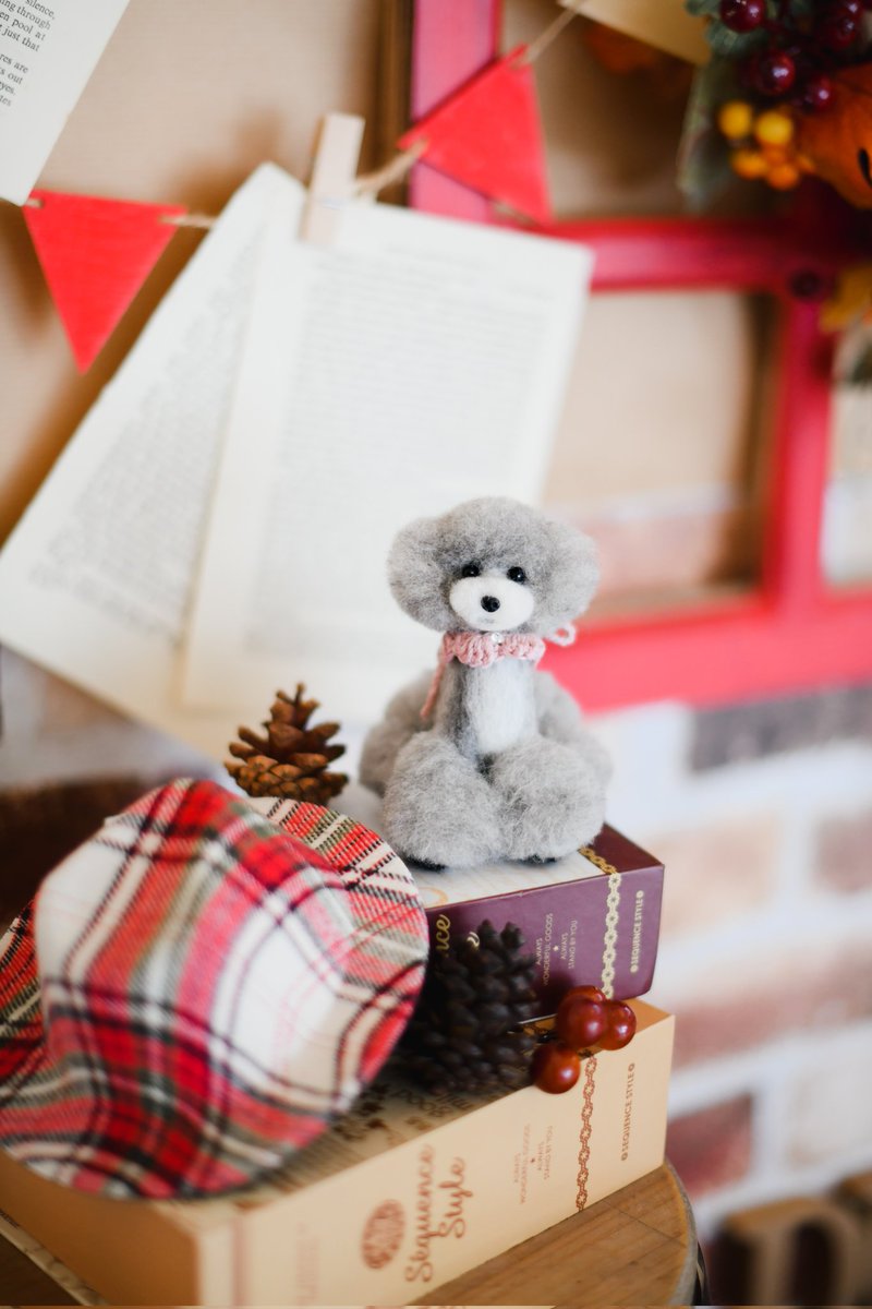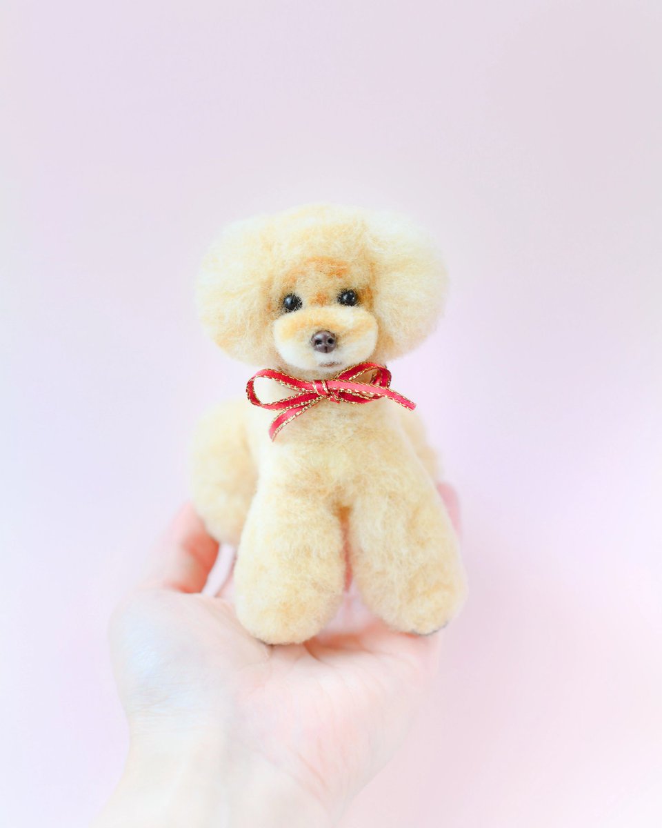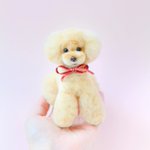 秋カラーのフォトスタジオで(*´∀`) ニュアンステディベアカットのかわいこちゃん♪ お尻はリボンおパンツ*⑅୨୧ #羊毛フェルト #ハンドメイド #ハンドメイド好きさんと繋がりたい #私の作品もっと沢山の人に広がれ祭り #シルバープードル #犬のいる暮らし