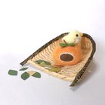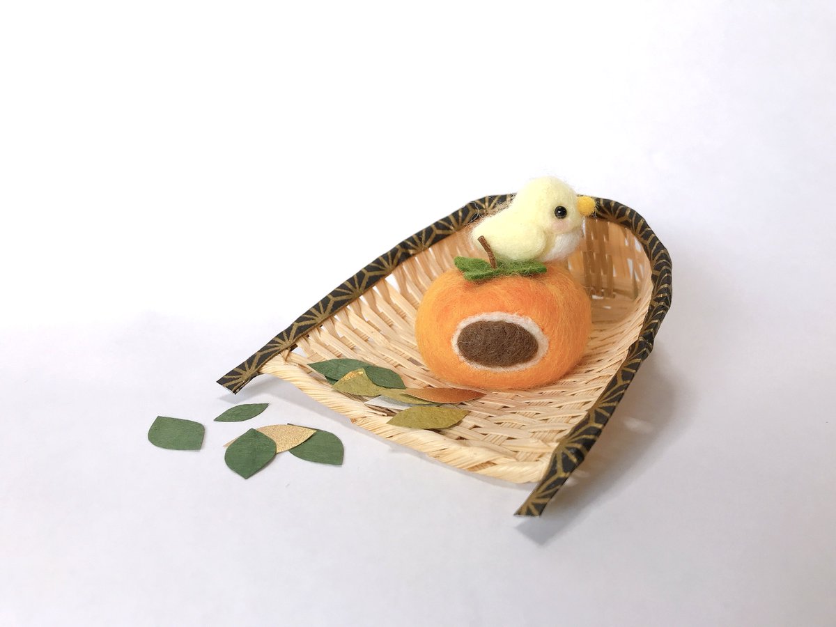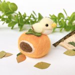 秋深まる。柿の和菓子と小鳥 クリーム色 羊毛フェルト 置物 |ハンドメイド、クリエイター作品のマーケットプレイス Creema creema.jp/item/10175250/… @Creema_jpより #creema #creemaで販売中 #秋 #羊毛フェルト #柿 #和菓子 #needlefelt