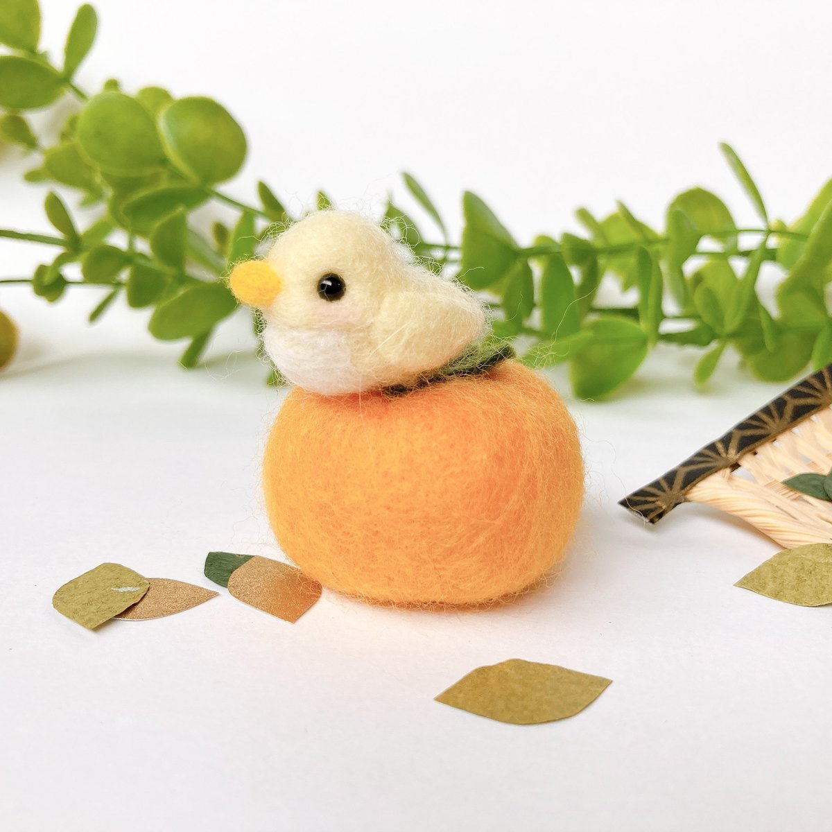 Aki Ako'S GALLERYさんのほっこり小鳥の四季の花 金木犀 フェルトマット付き 羊毛フェルト 置物 minne.com/items/33886876 #minne #minneで販売中 #羊毛フェルト #needlefelt #小鳥 #金木犀 #鳥 #秋