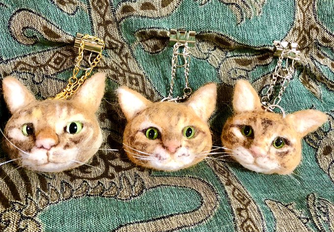 羊毛フェルト ミニチーター髪飾り ミニネコ ブローチ ミニミニネコ、キーホルダーになりました #絵が好きな人と繋がりたい #イラスト好きさんと繋がりたい #羊毛フェルト #ネコ #アクセサリー
