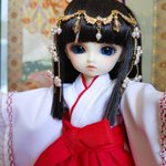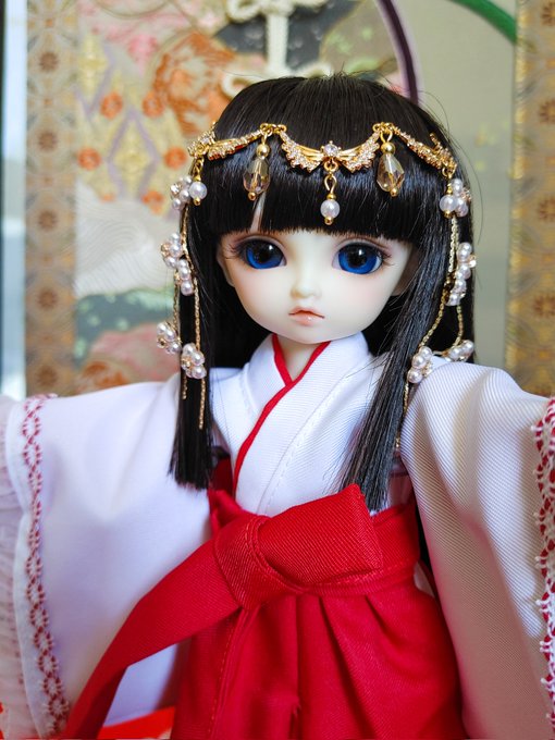 #ミディブライス 可愛いなぁ🥰💓 巫女服ドレス minne.com/items/17142312 ※巫女服は各ショップで販売中💡(プロフから) ※パールフラワーのヘッドドレスは近日販売予定 #羊毛ちくちくheartleaf #ドールオーナーさんと繋がりたい #ドール巫女服 #ドール着物 #ミディブライスアウトフィット