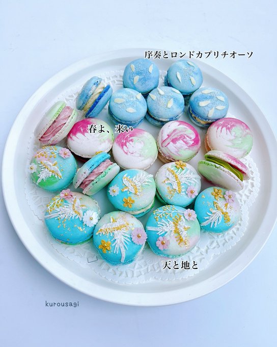 Rabbit Rabbit White Rabbit🐇 羽生くんがゆっくりと心身ともに静養できますように🌸 世界に平和が戻ってスポーツが楽しめる世の中になりますように🌸 オリンピックお衣装のイメージでマカロン3種作りました。イチゴ、抹茶、柚子味。 #羽生結弦 #YuzuruHanyu𓃵 #羽クリエイティブ