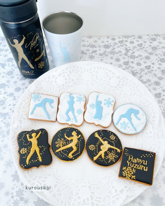 ANA✈YUZUボトル&タンブラー届きました💕お揃いのシルエットアイシングクッキーも作ってみました😊 #羽生結弦 #YuzuruHanyu𓃲 #羽生くんを補給しよう #羽クリエイティブ