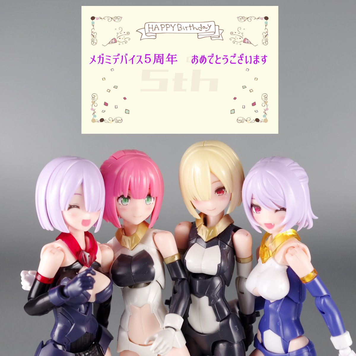 メガミデバイス5周年を祝うバースデーカード企画、たくさんのご参加ありがとうございます! こういう催しを企画する楽しさも、メガミデバイスの魅力の一つですね、6年目も全力で楽しませていただきます! #自宅で祝うメガミ5周年 #メガミデバイス