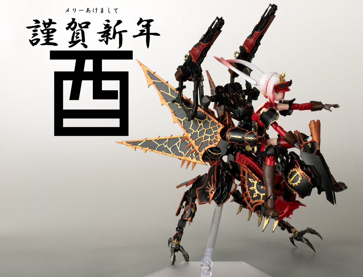 完全に出遅れた上に完成間に合わず、というぐだぐだ状態なので、過去モノでご容赦下さいませ。 5周年おめでとうございます。 いつも楽しませていただいております。 製品開発に携わる皆様に感謝を。 #自宅で祝うメガミ5周年 #メガミデバイス