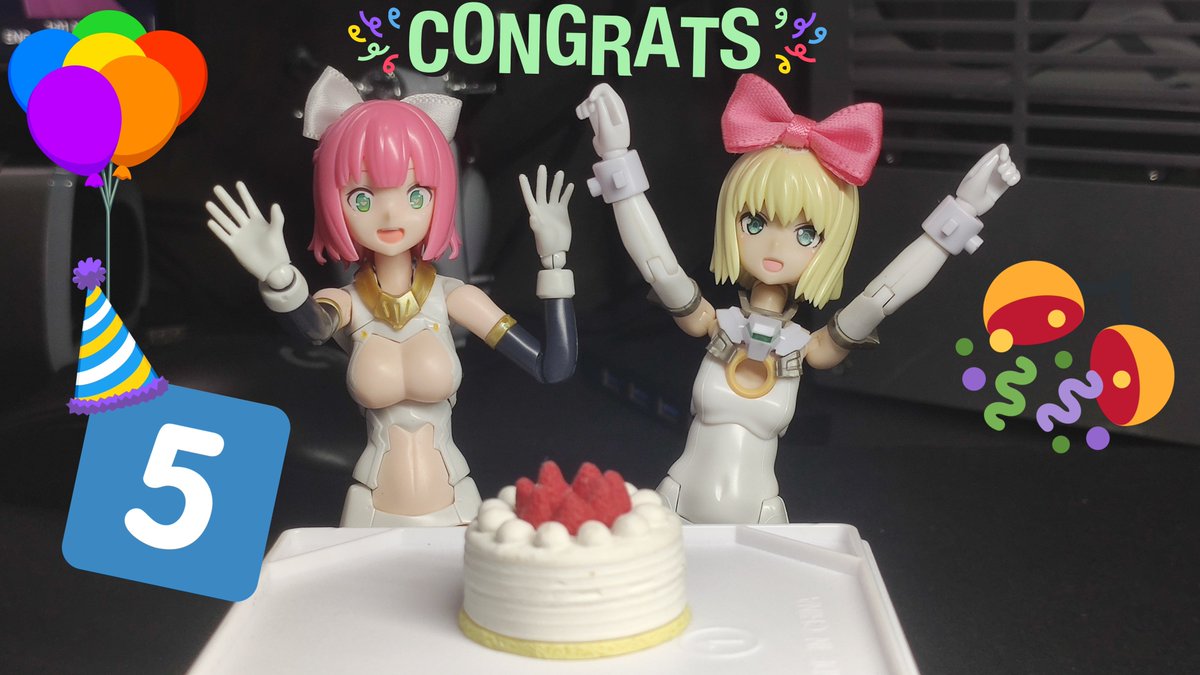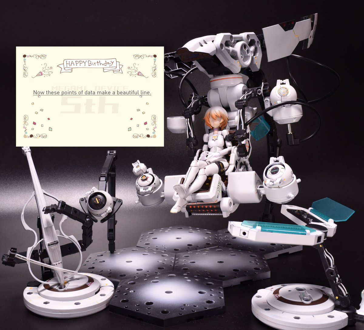 おめでとう!メガミデバイス5周年! 武装神姫から数えて15周年! もう彼女たち無しでの生活は考えられない年月が経ちました。 これからも末永くよろしくお願いします!! #自宅で祝うメガミ5周年 #メガミデバイス5周年 #メガミデバイス
