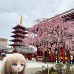 #深夜の初音ミク撮影60分一本勝負 4/25【観光】「フライング」 夕暮れ時に陽の明かりに照らされた 枝垂れ桜のカーテンに出会えました🌸 #雪ミク #ねんどろいどどーる #みくさんぽ #弘前公園 #桜 #花見 #弘前さくらまつり