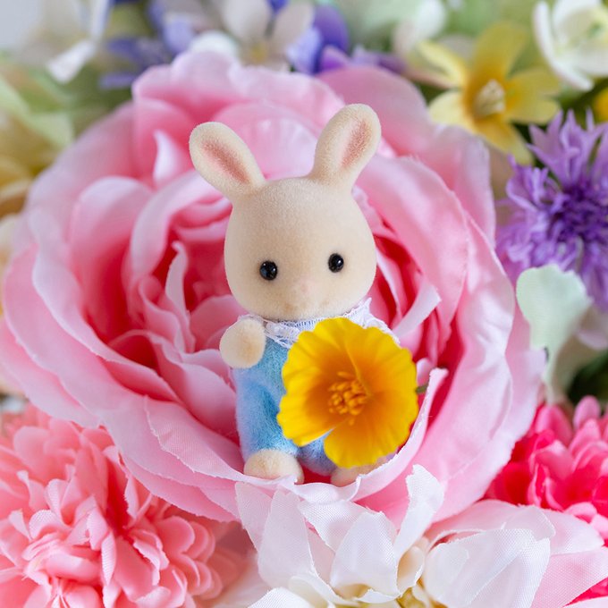なんだか、お花のいい香り🌼 シルバニアファミリーのお人形をお花と一緒に飾ってみました✨ お花に囲まれていると、まるでお花の妖精さんみたいですね♪ #シルバニアファミリー #シルバニア #シルバニア赤ちゃん #花 #カラフル