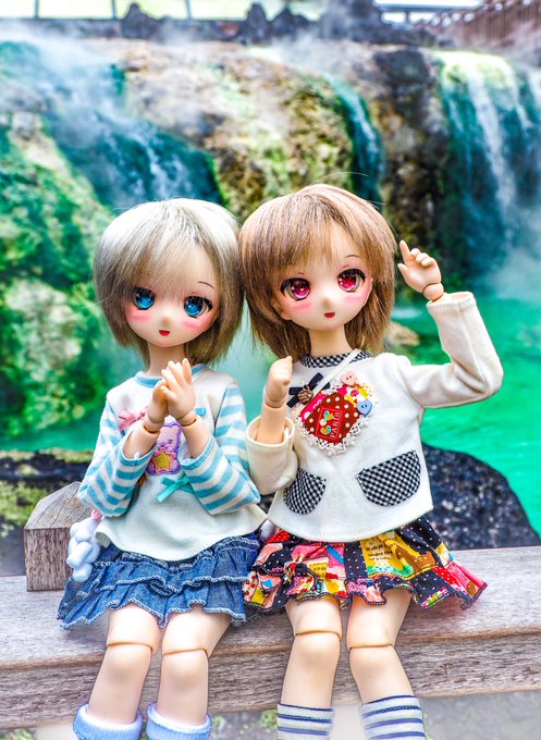 温泉の湯畑にきましたよ☺️ グリちゃん、ここは熱いお湯をゆっくり回して、お風呂にできるように冷ますんですって☺️ お湯のけむりがすごいね!😆 #キューポッシュ #子ぐまのグリちゃん #草津温泉 #草津温泉ドール撮影会 #草津