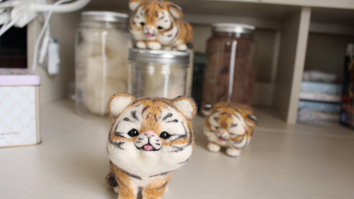 5匹の虎さんたち、ヤフオクにておうちを探しています😊 本日19時から21時頃終了予定になっています。よかったら覗きに来てください💕 #羊毛フェルト #虎 auctions.yahoo.co.jp/seller/wata_w_…