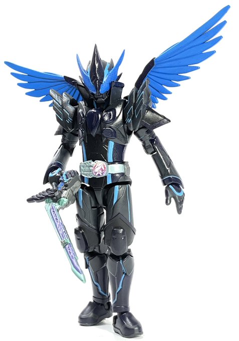 出来ました。 仮面ライダーホーリーライブ エフェメラル カゲロウの力を一時的に宿した妄想フォームです。 トサカと青い翼が特徴のカラス、ステラーカケスをモチーフにダークブルーな感じに仕上げました。 #仮面ライダーリバイス #装動 #装動新戦士 #装動押印 #ニチアサフィギュア改造部