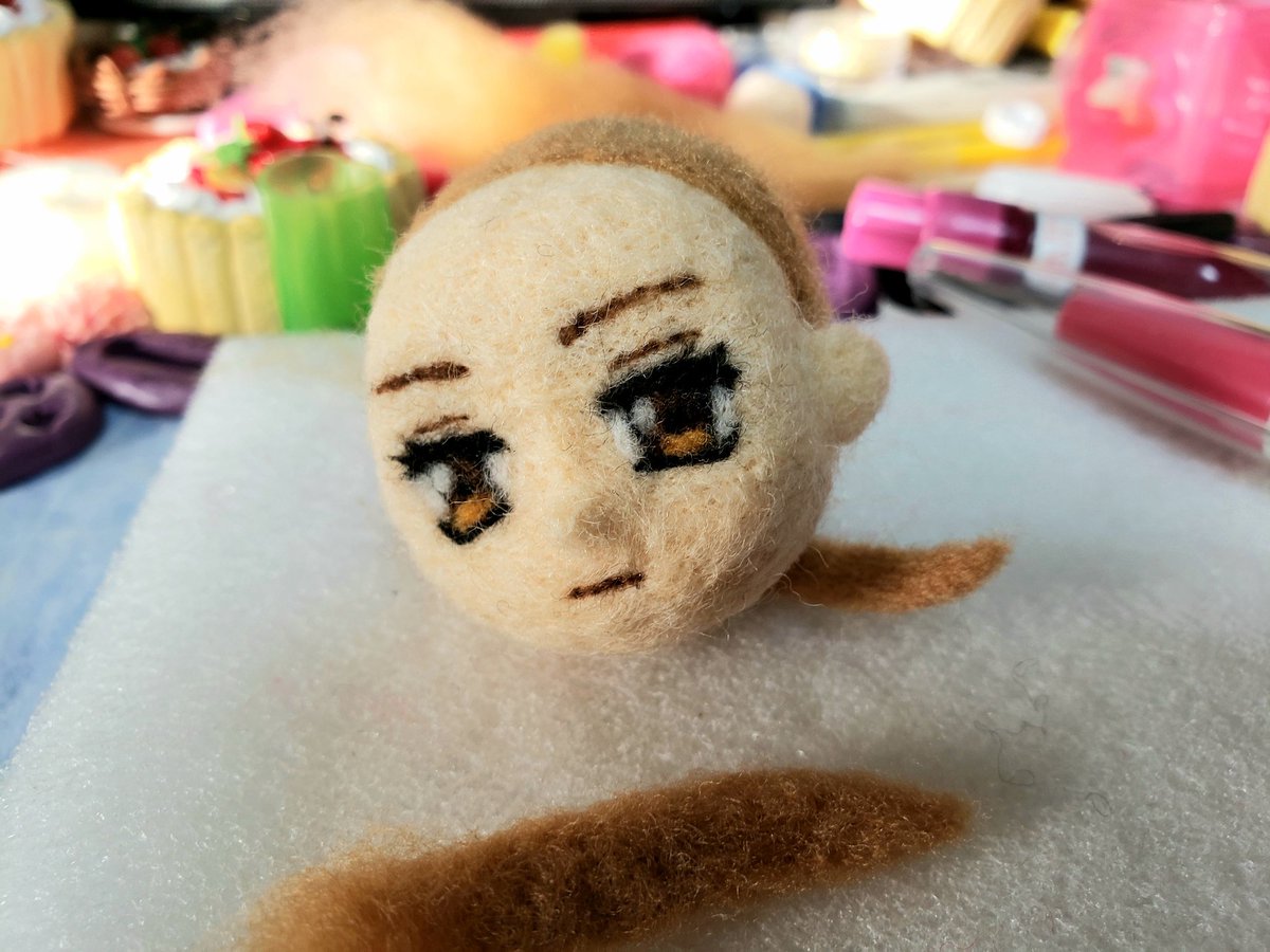 次の練習は、オリキャラです。あんまり笑わないキャラですが、造形が簡単だから挑戦することに。 って、しれっと目の大きさをしくじってリトライしましたが( ;-`д´-) やっと、目の大きさがまとまった気がします。 さて、髪を作らねば。 #羊毛フェルト #製作過程 #羊毛フェルト初心者