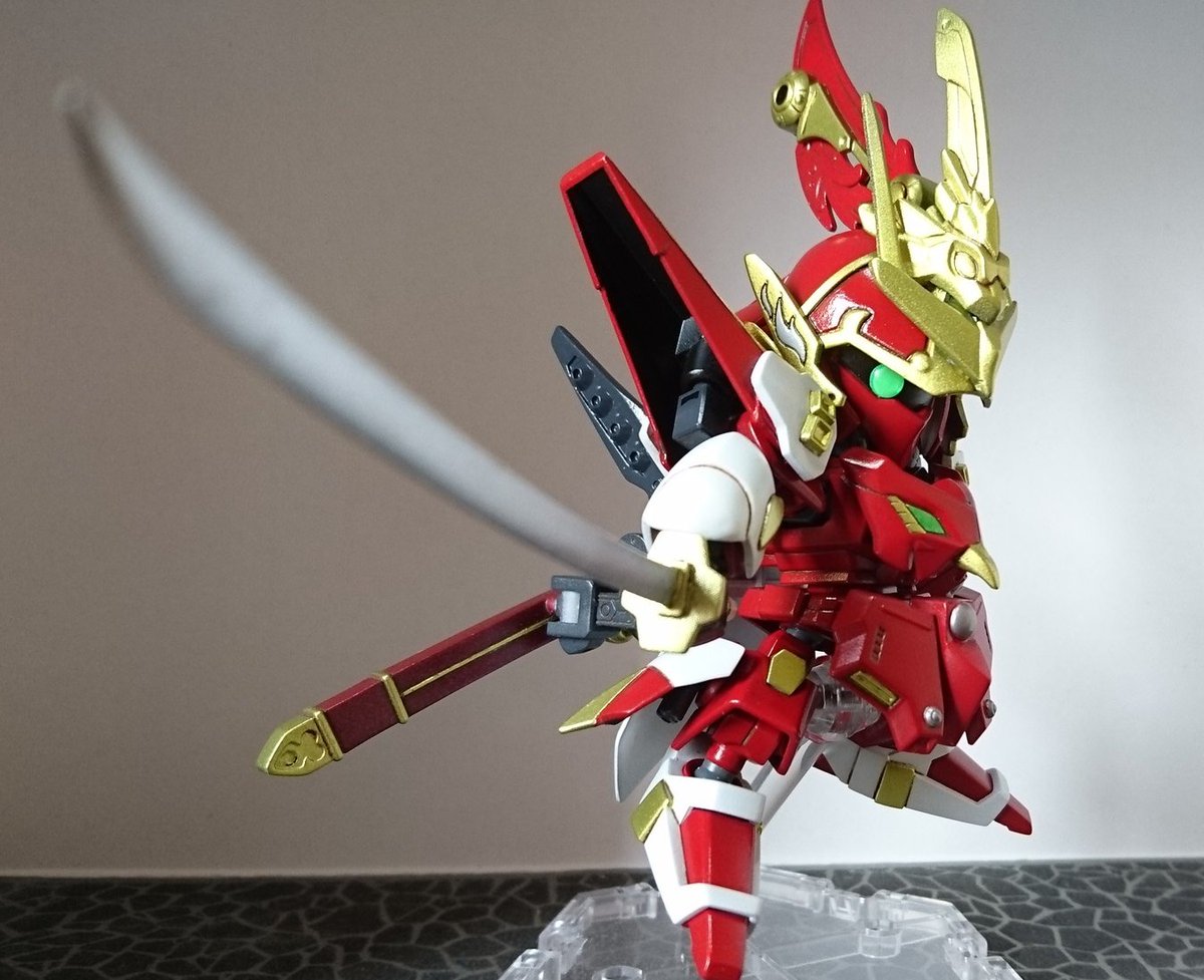 #誰にでも自分だけのサザビーがある 剣豪副将軍 漣飛威 SDミキシング処女作にして、何故か未だに超えられない壁となった作品www 背中の長刀は、設定どおり自分では抜けないので、小魚(ファンネル)達に手伝って貰います♪