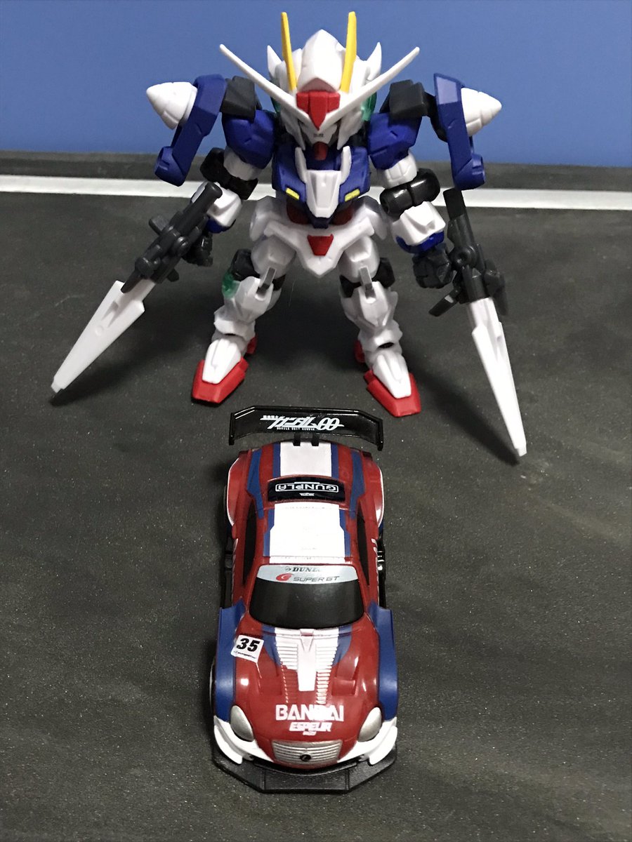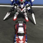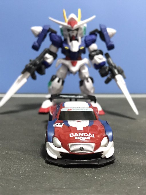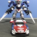 #夜のフィギュア撮影会 お題「フリー」 super GT07 レクサス BANDAI ガンダム00モデル 「俺達がガンダムだぁ‼️」 #モビルスーツアンサンブル #ガンダム00 #オモ写 #車