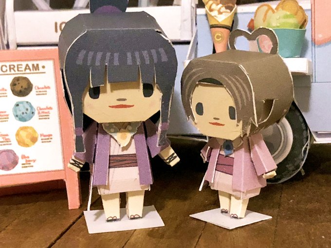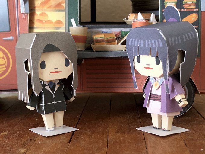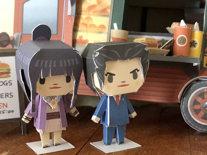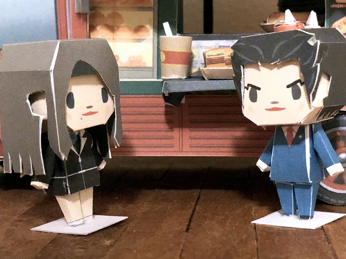 「ナルホドー君、ラーメン屋さんはそっちじゃないよ。」「真宵ちゃん、それは後でって話だったじゃない。」で結局ラーメン屋に行く二人。この二人の関係、本当好き。 I love their fellowship like friendship. #papercraft #papertoy #AceAttorney #逆転裁判 #ペーパートイ #ペーパークラフト