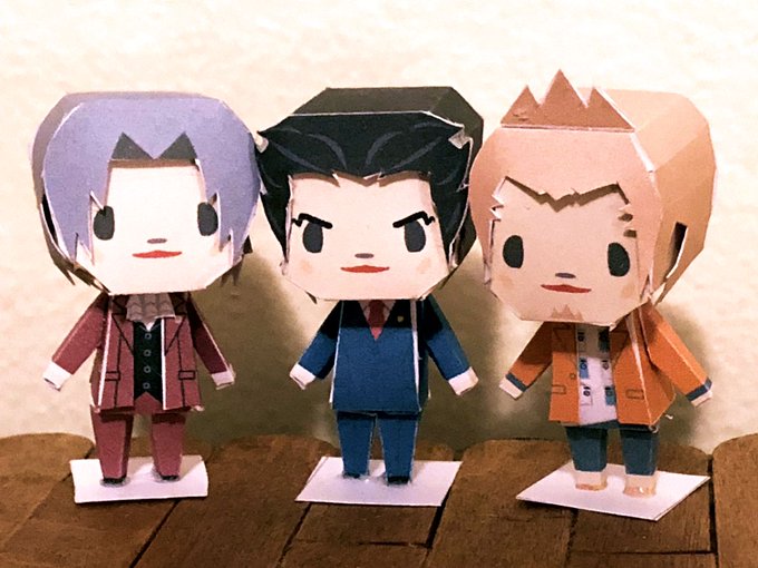 逆裁はキャラが一々濃いから、並ばせただけで脳内ショートストーリーが生まれる。Each character in Ace Attorney stands out so much that short story can start from anywhere. #papercraft #papertoy #AceAttorney #逆転裁判 #ペーパートイ #ペーパークラフト