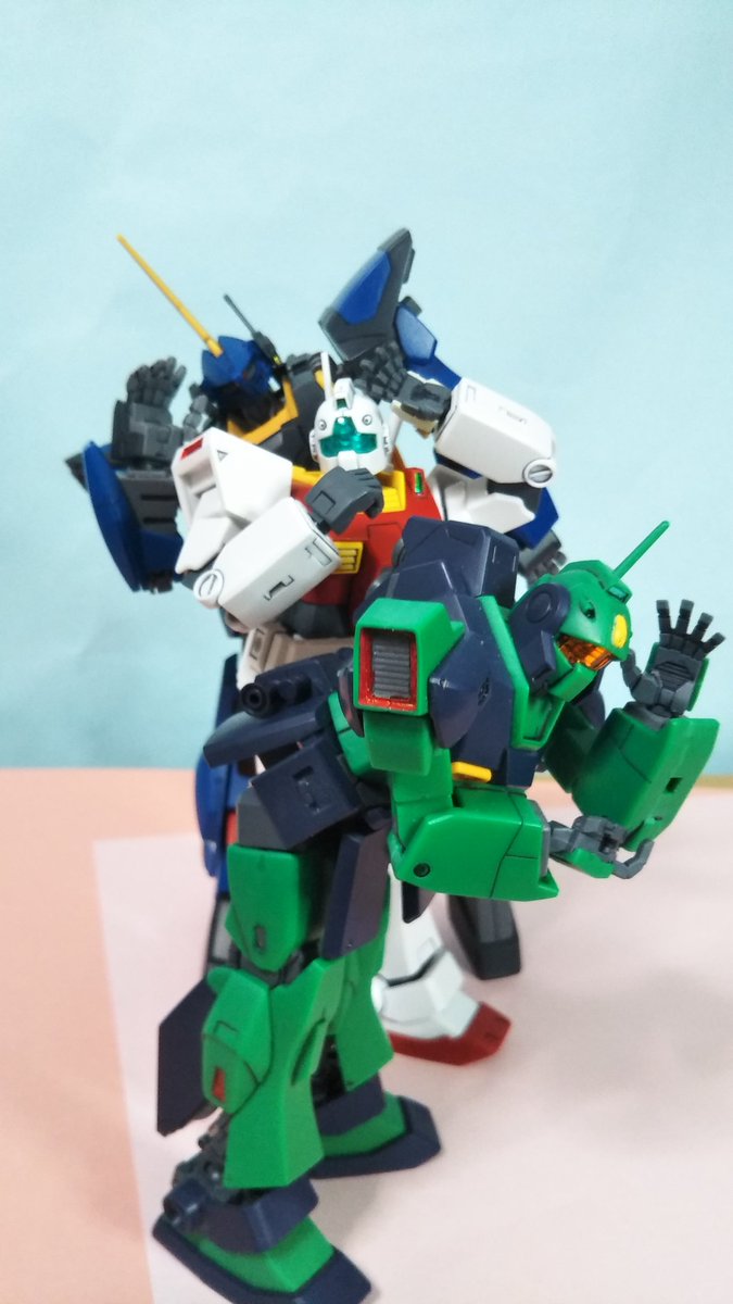 #今月作ったプラモ晒そうぜ 月末にはまだ早いけど、さすがにもう作れない。今月は、バーザム、ネモ、ジムIIと『Zガンダム』シリーズから量産型MSを3機投入。ポージングは、あざとさを前面に押し出してみたが難易度高すぎ君だった。 #ガンプラ #量産型