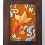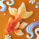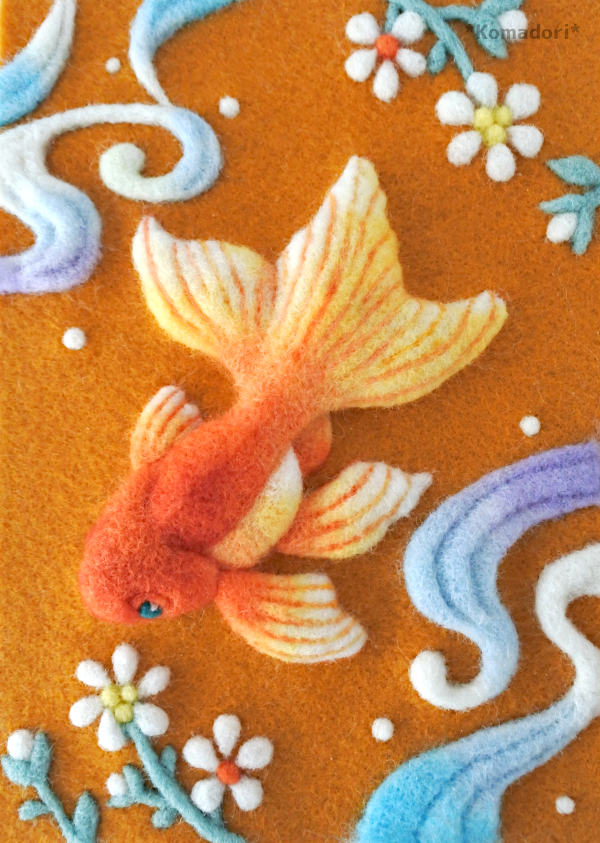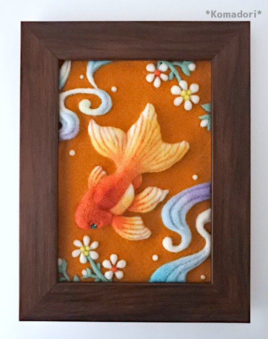 @Lupopo_cafe 様、企画展ありがとうございます!今回も新しい出会いがありますように✨ 動物や植物、季節のモチーフをぽっこりとした凹凸と優しい色合いを大事に羊毛刺繍で仕上げています💕 🌼minne→minne.com/komadori #羊毛フェルト #ハンドメイド #ニードルフェルト #needlefelt #金魚