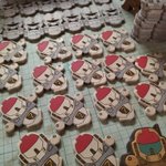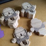 続いて「バイファム」のレーザー刻印。試作より"黒く塗りつぶす箇所"の色(焼き具合)を濃くしたので1個毎の刻印時間が長くなってしまいましたが、上手に焼けました。 #WF2022S #銀河漂流バイファム