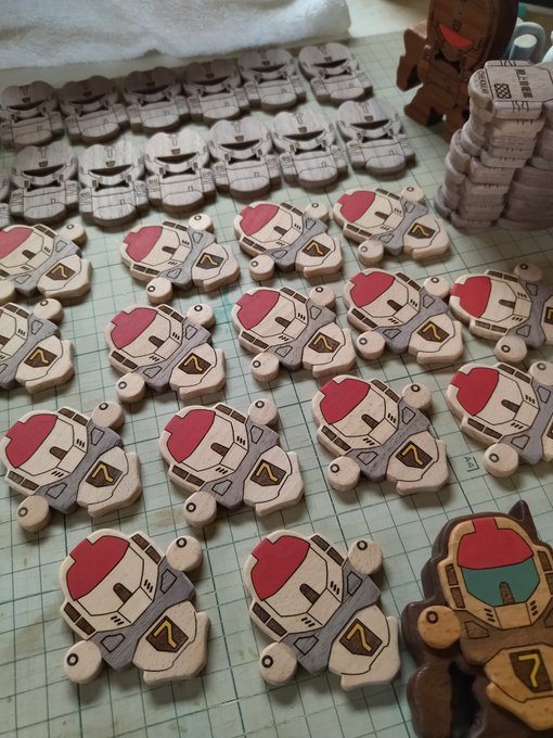 本日もワンフェスに向けてロボの部分塗装を。しばらく「映像研フィギュア」のような細かい塗装ばかりしていたので"筆運び"が我ながらスムーズでスイスイ塗れてしまい驚きました。 #WF2022S #銀河漂流バイファム #機動警察パトレイバー