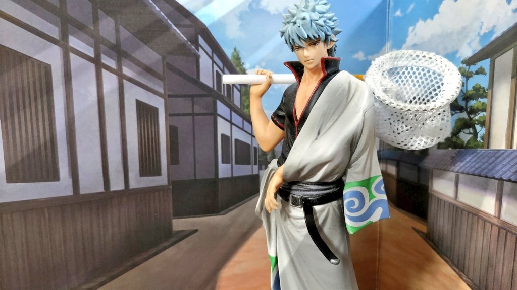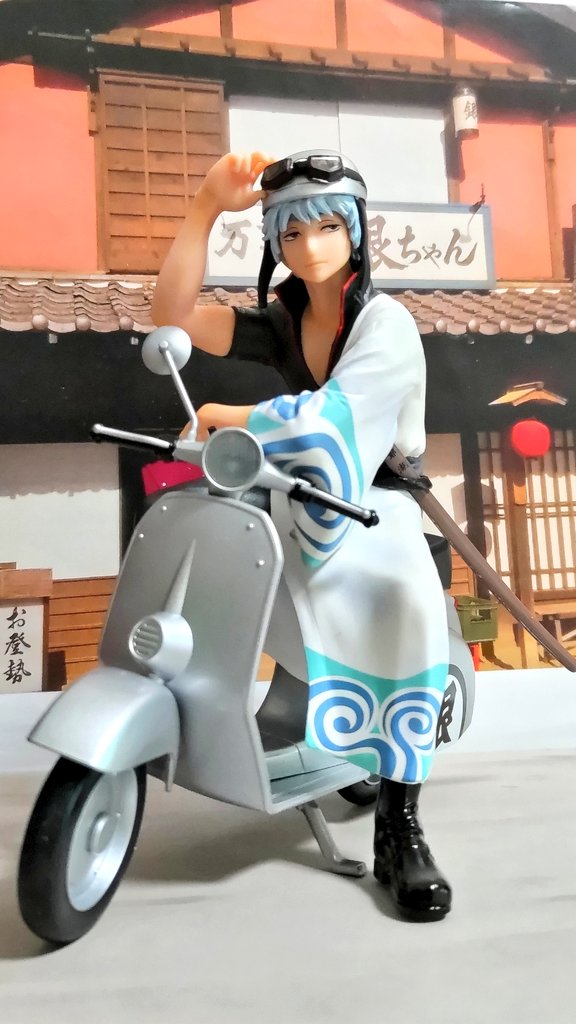 #夜のフィギュア撮影会 お題「人形」 大江戸新宿かぶき町で商売している 銀さん 「万事屋代表 坂田銀時です‼️」 「暇な時は腹がへるから人形の如く微動だに動きません‼夜露死苦✨」 #銀魂 #オモ写