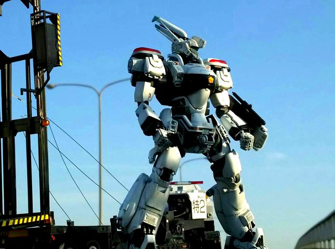 デジラマでなくお外で自然光撮影でした。イングラムは青空が良く似合います( ´ー`) 1/48のイングラムです。 #銃をかまえろ #パトレイバー #パトレイバー模型部 #TNGパトレイバー