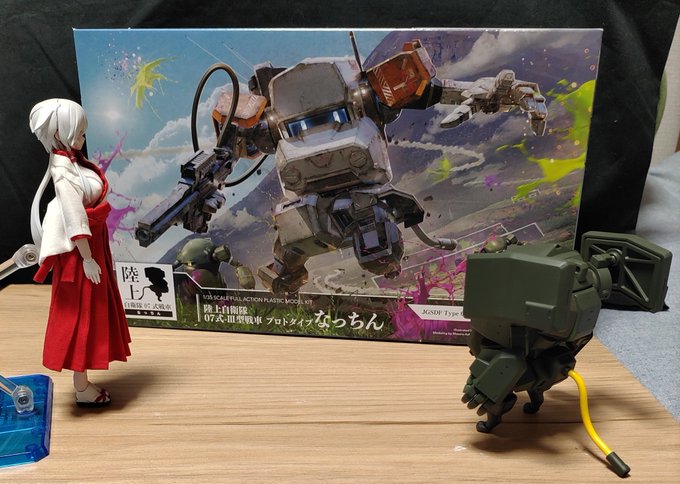 コトブキヤ 陸上自衛隊07式-III型戦車 プロトタイプなっちんが届きました。肩装甲やロッドアンテナが通常のなっちんとは違いますね。 フォルテ『こちらのなっちんはどうされますの?』 少し加工しようかと考えています。テムジンの完成後に取り掛かります。 #陸上自衛隊07式戦車なっちん