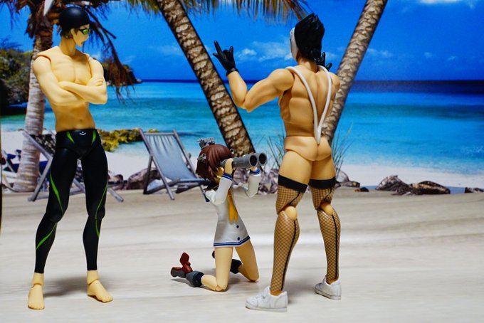 #夜のフィギュア撮影会 1/5 お題 『海』過去 橘「なにか見えるか?」 雪風「せっ船長!悪魔の実の様なものが見えます!」 変態仮面「お嬢さんそれは私のおいなりさんだよ」 #オモ写 #Toyphotography #フィギュア #figma #橘真琴 #雪風 #変態仮面