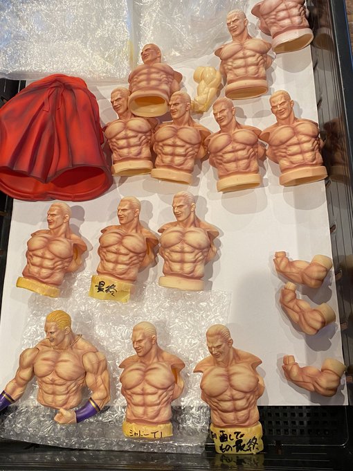 ■ギース生産中■ 本当にWFに辿り着けるのか?ってくらい絶賛ヘロヘロ中ですが、ギース様の不敵な笑みと、買ってくれた方に喜んでもらいたいという衝動が、僕を何度でも奮い立たせる。スタッフも残業してくれたり助っ人も来てくれたりと全員で追いかけてます! #餓狼伝説 #SNK #studio24餓狼