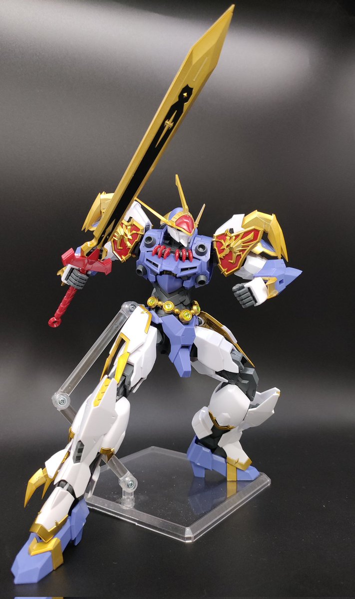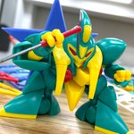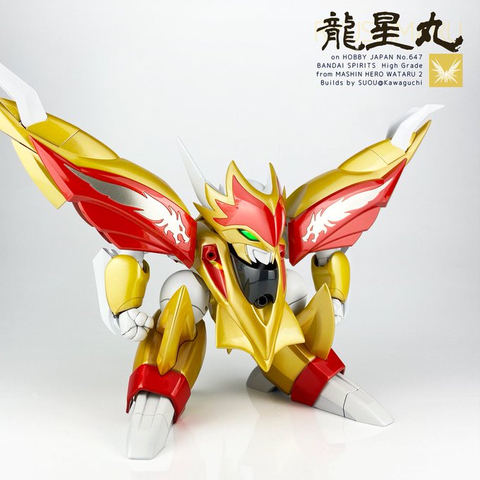 10年前に自作した龍神丸です。設定画の立ち姿にこだわった上で立体としてもかっこよく見える様に作ってます。肩の龍の色分けは、この頃は効率的な作業が出来なくて苦労してたなあ。両手持ちの為の肩の二重関節も無い知恵絞って考えました。 #原作の隣に自分の作品を貼る #魔神英雄伝ワタル