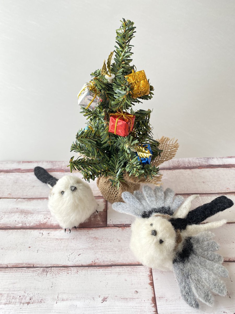 クリスマスプレゼントに贈ってくださると 聞いてクリスマスラッピング頑張りました〜🎄 期間限定のキャンペーンなので、 おまけのクリスマスリースもつけてます✨ #スズメ #すずめ #チュン活 #メジロ #クリスマスプレゼント #鳥好き #羊毛フェルト #みんなで楽しむTwitter展覧会