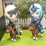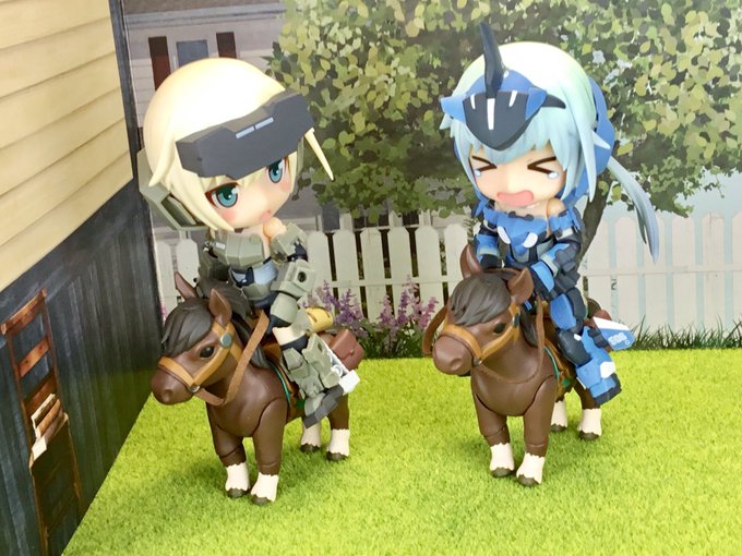 #夜のフィギュア撮影会 #キューポッシュ #フレームアームズ・ガール #FAガール 【7/28 お題 『冒険』】 「さあ、冒険の旅に出ますよ、スティレット❗️」 「ちょっと待ってよ❗️まだ馬に慣れてないんだから、旅に出る前に馬から転げ落ちちゃうわ‼️」