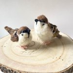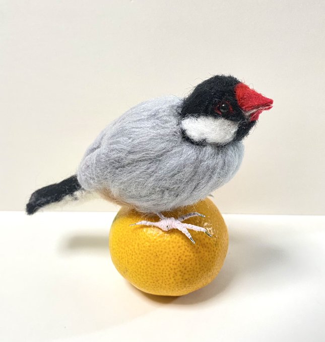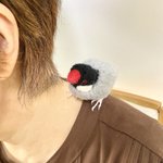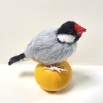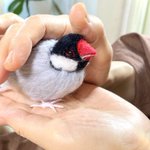 母の肩に乗る文鳥作りました 乗った感じものすごくリアル!とのこと^ ^ #2021SNS秋の芸術祭 #羊毛フェルト #文鳥 #みんなで楽しむTwitter展覧会 #秋の創作クラスタフォロー祭り