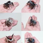 #2022年年末に今年まだ出会ってない作品に出会うタグ 半分に折った黒い紙を下絵なしでハサミで切り抜いて、立体にする「切り折り紙」で、1枚で繋がったまま糊付けせずにお腹側も作り込む甲虫達に、小紋和紙で柄付けした #武者蟲 を作ります お初にお目にかかる方以後お見知り置きを〜