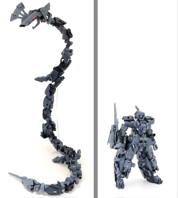 サーペンタイン03 ドラゴン型のエグザビークルに可変するエグザマクス。 可変後の体長はエグザマクス時の5倍以上に変化する。 質量保存則もビックリな差し換え無し可変です。 #30MM古代都市戦 #30MM地球連合軍