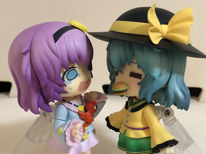 #5月14日はこいしの日 僕が紙粘土で作成しました「古明地 こいし」さんです!🎵 こいしさんの髪の色や、サードアイとその♥️マークのケーブル作りに拘りました☺️ 最後は、お姉ちゃんの「古明地 さとり」を含めた「地霊殿」の家族達との集合写真です😆!🎵