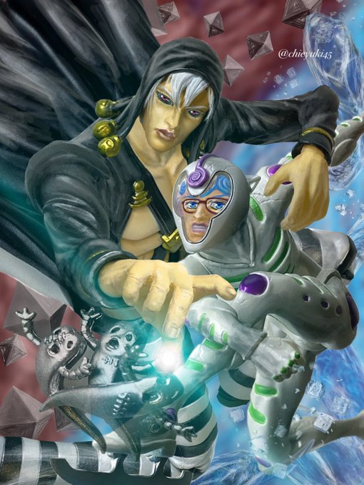 #8月になったのでフォロワーさんに自己紹介しようぜ JOJOの超像可動を中心にフィギュア撮影後スマホ上で指で加筆、合成加工をしております。アニメのシーンの再現や生存if、動画などを作成しています🙇♀️拙い表現ですがよろしくお願い致します😌