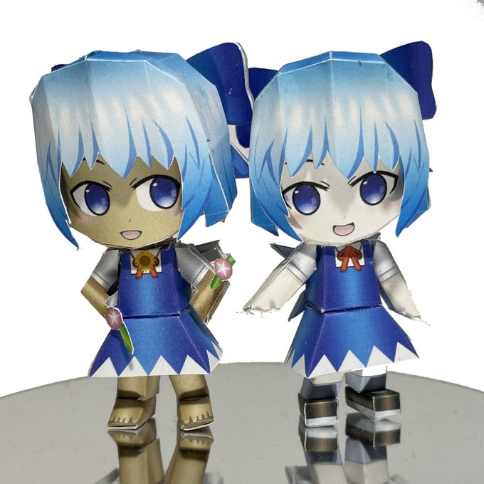 コミックライブin名古屋 オータムスペシャル2022に持っていくチルノと日焼けしたチルノのペーパークラフトの試作品をパシャリ。 10/9開催なので近場の人は良かったら来てね。 #東方Project #9月9日はチルノの日