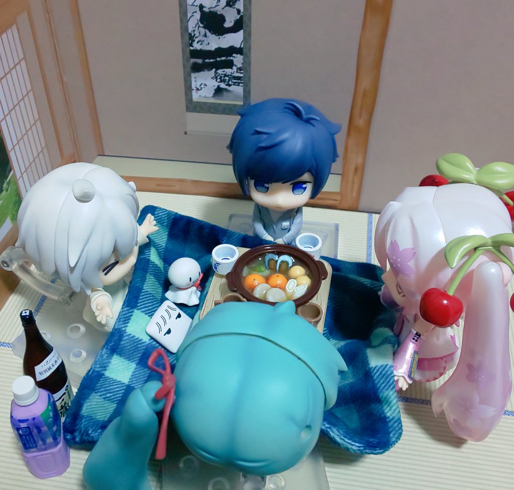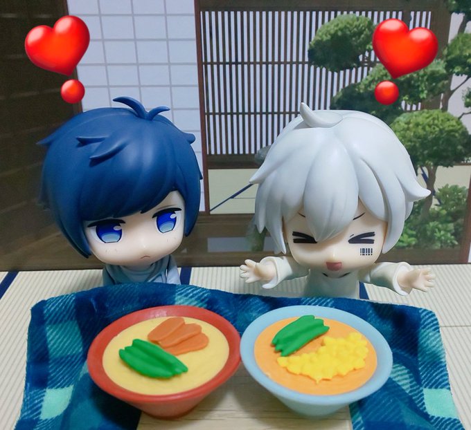 お題「あたたかいたべもの」フライング既出右新規写真 暖かいラーメンと鍋🍜🍲 #深夜のねんどろ撮影60分一本勝負 #深夜の初音ミク撮影60分一本勝負 #まふまふ #そらる #AftertheRain